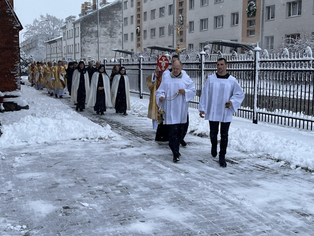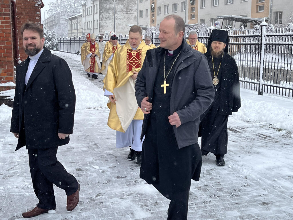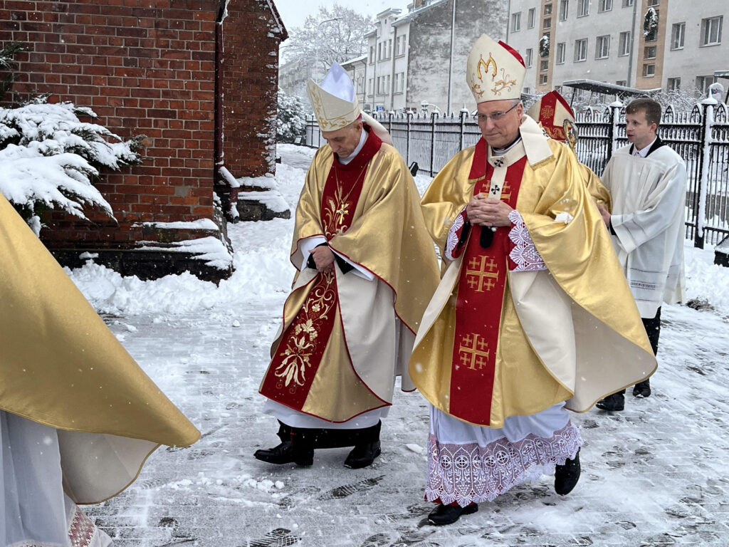 Sirsnīgā dievkalpojumā Jelgavā Bezvainīgās jaunavas Marijas katoļu katedrālē, kur piedalījās Romas pāvesta sūtnis Baltijas valstīs ahibīskaps Georgs Gensvains, Romas katoļu Baznīcas galva Rīgas arhibīskaps Zbigņevs Stankevičs, kā arī vairāki citi augsta līmeņa garīdznieki, no draudzes atvadījās bīskaps Edvards Pavlovskis, kurš vadīja Jelgavas katoļu diecēzi kopš 2011. gada, kad viņš nomainīja šajā amatā bīskapu Antonu Justu. Par priesteri Eduards Pavlovskis tika iesvētīts 1975. gadā.