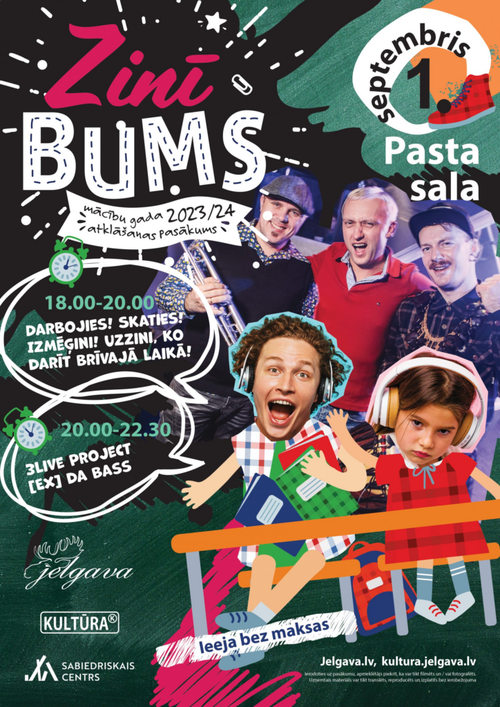 Zinību dienā no pulksten 18 līdz 22.30 skolēni aicināti uz Pasta salu, kur notiks mācību sezonas atklāšanas pasākums “ZinīBUMS”, informē pašvaldība.