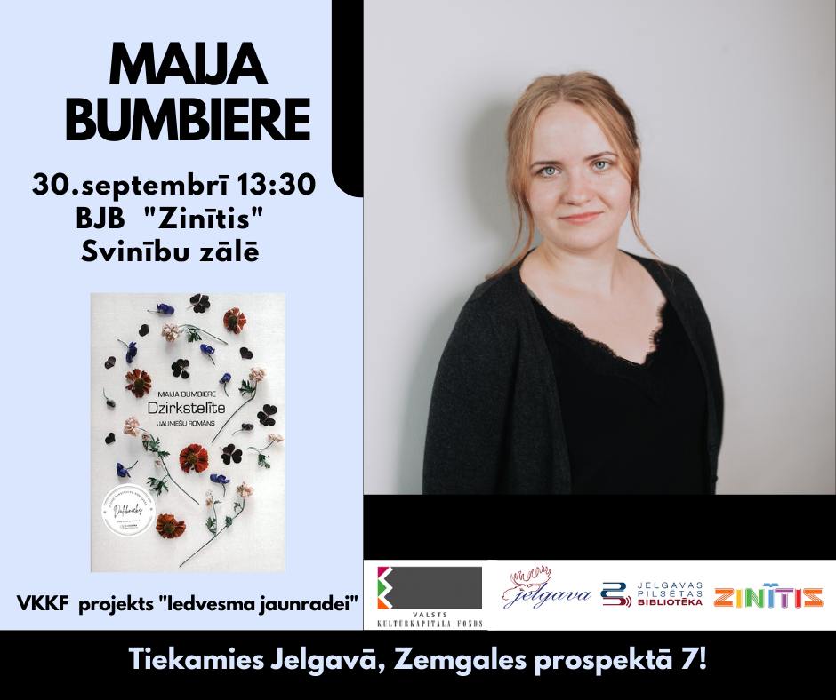 30. septembrī pulksten 13.30 Jelgavas bērnu un jauniešu bibliotēkas “Zinītis” Svinību zālē uz tikšanos gaidīs grāmatas “Dzirkstelīte” autore Maija Bumbiere. Grāmata “Dzirkstelīte” tapusi pateicoties Jauno rakstnieku konkursam, kas ir lasīšanas veicināšanas projekta “Bibliotēka” sabiedriskā iniciatīva, informē Jelgavas Pilsētas bibliotēka.