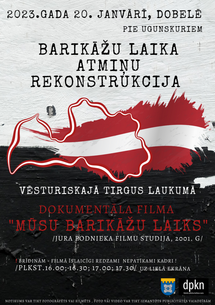 2023. gada 20. janvārī Dobeles vēsturiskajā Tirgus laukumā pieminēs 1991. gada Barikāžu laiku, informē Dobeles pilsētas kultūras nama producente Linda Čerpinska.