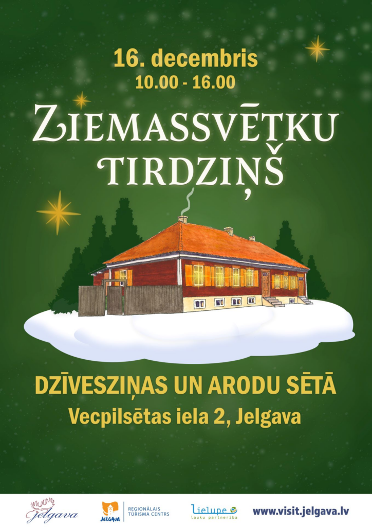 Gada gaišākie un ģimeniskākie svētki jau klauvē pie durvīm. Jelgavas reģionālais tūrisma centrs (JRTC) sadarbībā ar biedrību “Lauku partnerība Lielupe” aicina pilsētas iedzīvotājus un viesus apmeklēt Ziemassvētku tirdziņu Dzīvesziņas un arodu sētā, lai iegrimtu ziemas saulgriežu atmosfērā un iegādātos Latvijā ražotus un vietējo uzņēmumu lolotus gardumus, dažādus priekšmetus Ziemassvētku tematikā kā dāvanas saviem tuviniekiem. Tirdziņā savu piedāvājumu pārstāvēs vairāk nekā 20 mājražotāji un amatnieki, būs pieejama plaša spektra produkcija – tekstils, somas, dvieļi, keramika, dažādi aksesuāri ar apdruku, ziemā tik noderīgās pirtslietas, adītas rotaļlietas, dekupēti un citā tehnikā greznoti egļu rotājumi, kaklarotas, dabiska kosmētika, bišu vaska drāniņas produktu uzglabāšanai, aromātiskas ziepes, bišu vaska sveces, dažādi gardi produkti no tomātiem, spēcinošs medus un citi biškopības produkti, imunitāti veicinoši Latvijas priežu produkti, dažāda veida maize un konditoreja, veselīgie cidoniju produkti, vilinošā cukurvate un vafeles. Lai atvieglotu dāvanu meklētāju uzdevumu, daži mājražotāji piedāvās jau gatavus dāvanu komplektus.