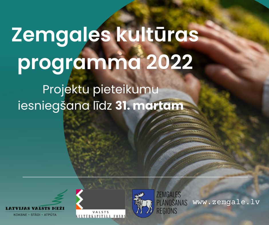 Pieteikumi Zemgales kultūras programmā 2022 tiek pieņemti līdz 2022. gada 31.martam.