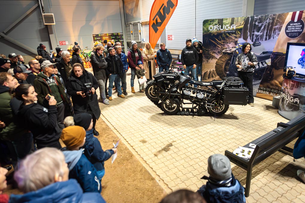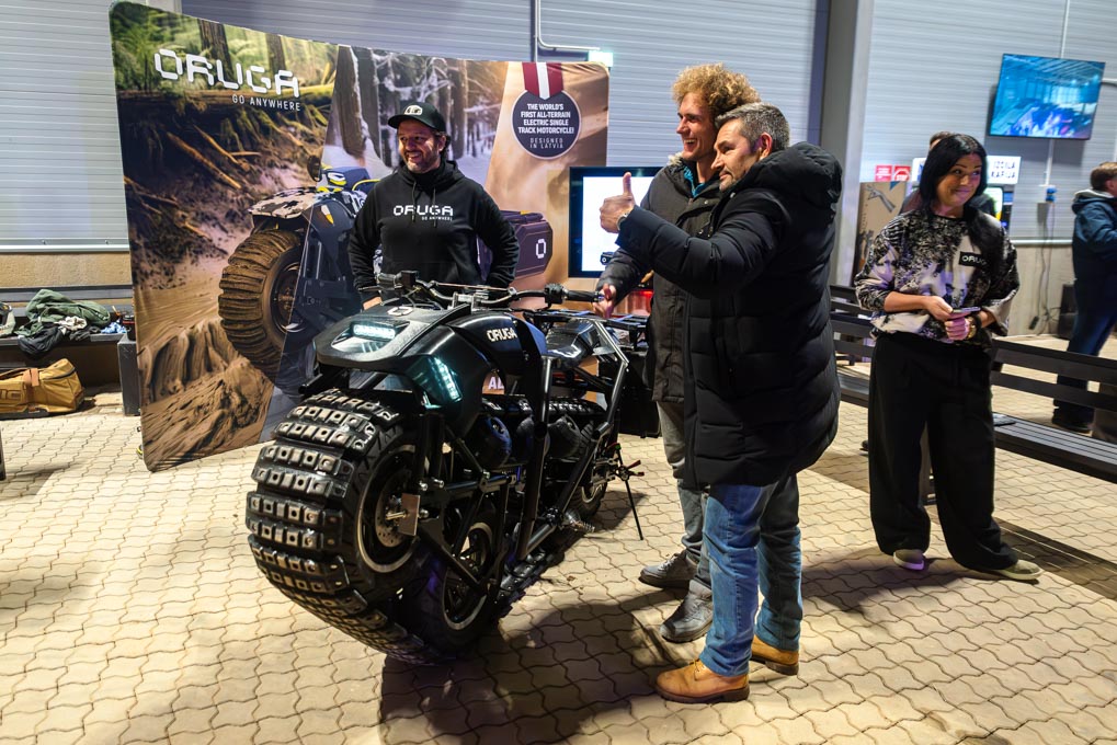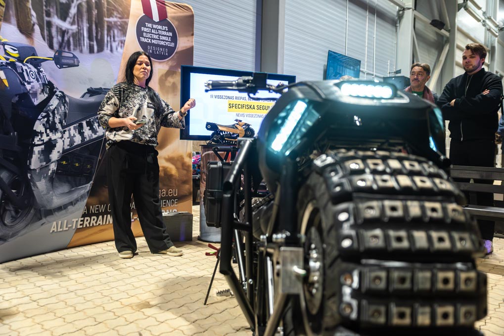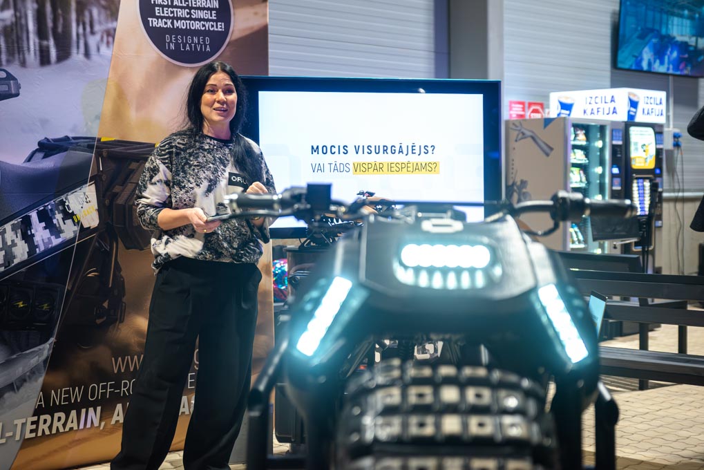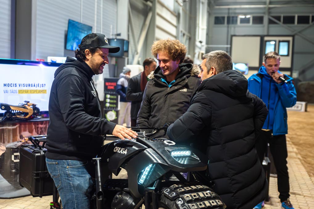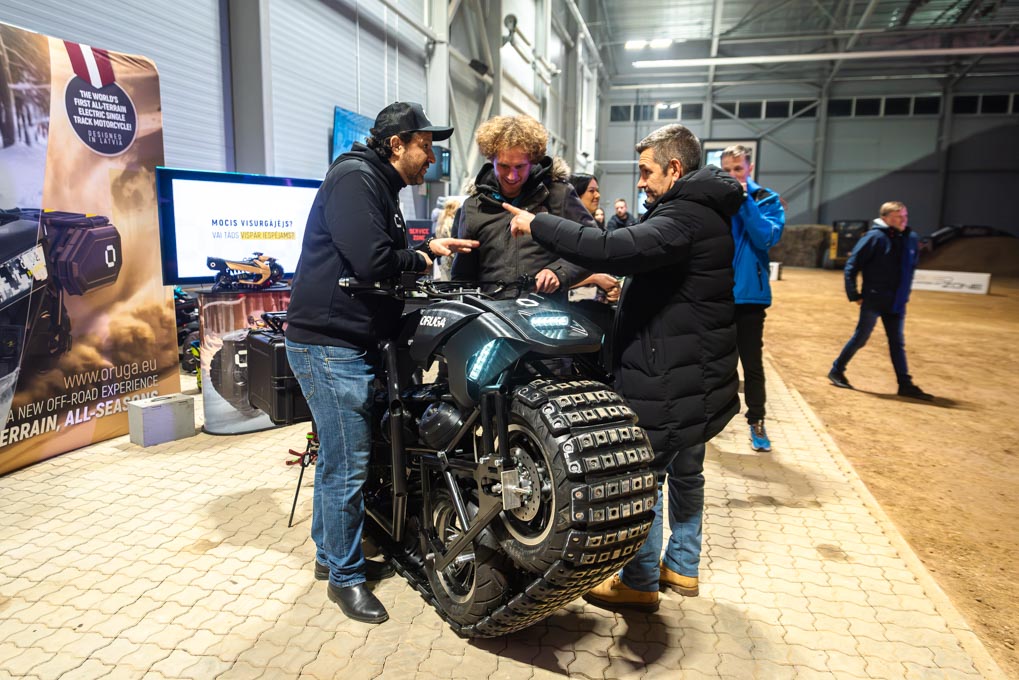 Pasākuma laikā apmeklētājiem tika stādīts priekšā Latvijā ražotais pasaulē pirmais elektrokāpurķēdes motocikls “Oruga”.
