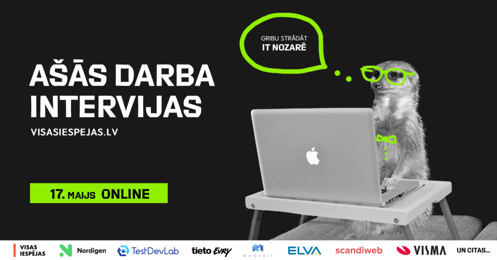 Intervijas norisināsies digitālā vidē – platformā “Gathertown,” un ieinteresētajiem darba meklētājiem tiks dota iespēja individuāli tikties ar pārstāvjiem no šādām aģentūrām un uzņēmumiem: “Magebit”, “Tietoevry”, ELVA, “VismaLabs”, “Scandiweb”, “TestDevLab”, “Nordigen”, “Giraffe360” un vēl citiem.