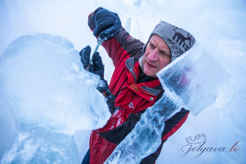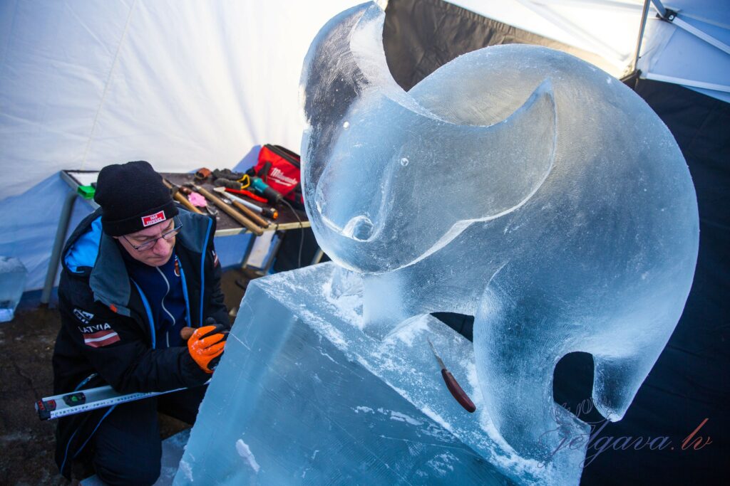 Jelgavā tēlnieki turpina darbu pie individuālajiem konkursa darbiem - top 30 ledus skulptūras
