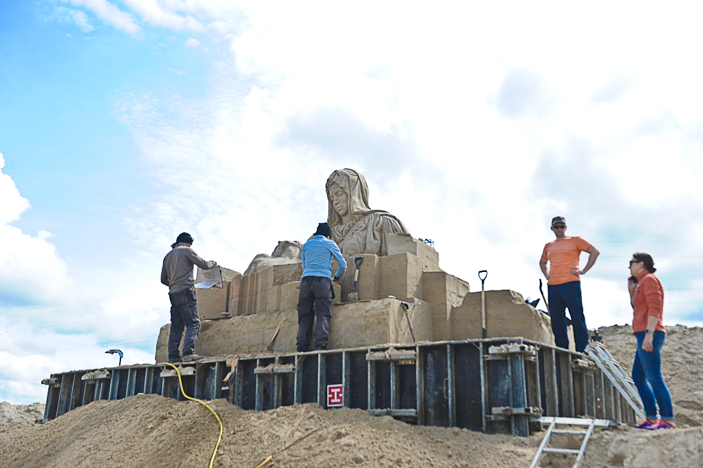 Tā, piemēram, Smilšu skulptūru parka demo skulptūras autori, pasaulē titulētākais ledus un smilšu tēlnieks Kārlis Īle un Maija Īle smiltīs atveido Milekandželo darbu “Pieta” (Žēlums). Pats K. Īle par izvēlēto darbu atzīst: “Šīs skulptūras veidošana ir īpašs izaicinājums. Pieta ir ļoti sarežģīta, ļoti izsmalcināta marmora skulptūra, kuru pārnest smiltīs principā nav iespējams. Galvenokārt es vēlos panākt līdzvērtīgu emocionālo vēstījumu, nevis uztaisīt tehnisku, mehānisku kopiju. Skulptūrai es pievienoju savas idejas un šī noteikti ir viena no manām emocionālākajām skulptūrām”.