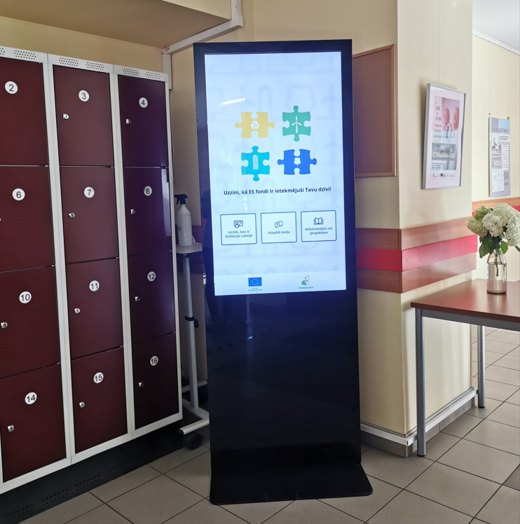 Digitālais stends bibliotēkā izvietots projekta #RītdienasES (#EUTomorrow) ietvaros ar mērķi modernā un saistošā veidā veicināt izpratni par kohēzijas politiku, tuvinot cilvēku spēju identificēties un izprast katru ES finansēto uzlabojumu savā dzīvē un ietekmi globālā mērogā.
