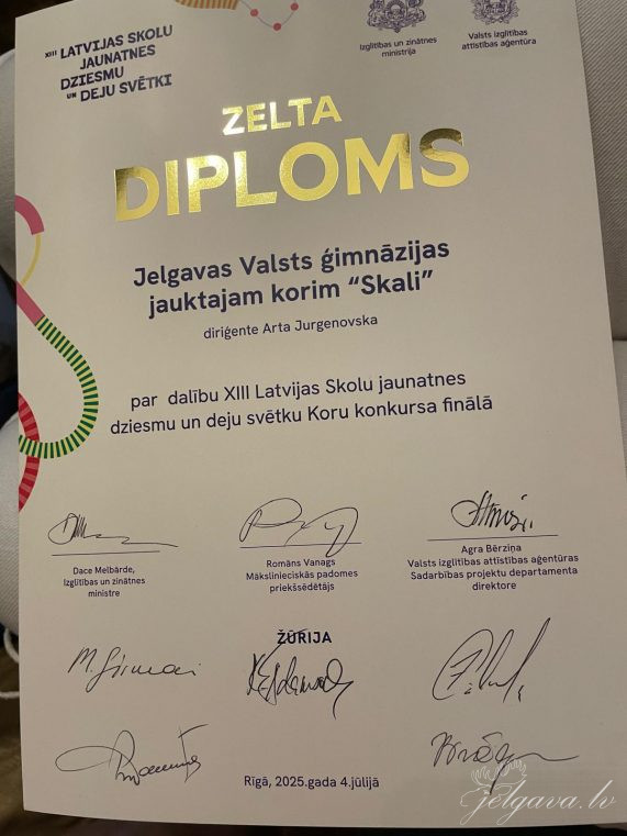 Visu Jelgavas kolektīvu sniegumu žūrija ir novērtējusi ar Zelta diplomu, informē Jelgavas valstspilsētas pašvaldība.