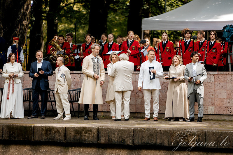 Svētdien, 6. jūlijā, simboliski ieskandināta svētku sākšanās, dalībniekiem no Vidzemes, Zemgales, Kurzemes, Sēlijas un Latgales satiekoties Dziesmu svētku parkā. Viesturdārzā godināti svētku virsvadītāji un virsdiriģenti, kuru vidū arī četri jelgavnieki, informē pašvaldība.
