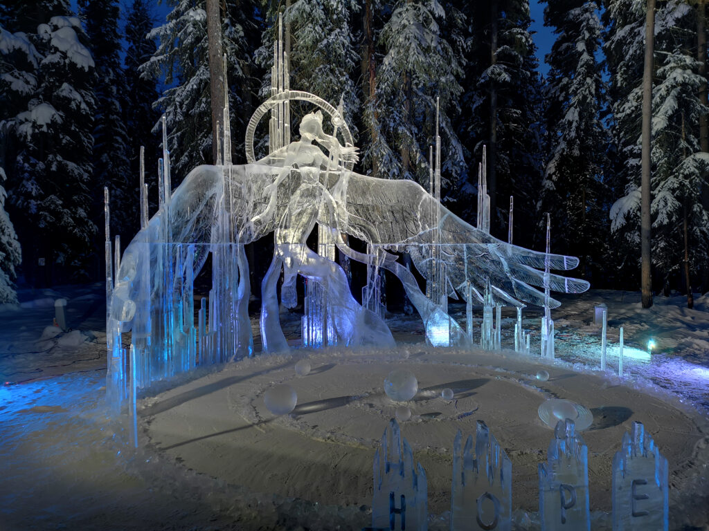 “Mūsu skulptūrā attēlots cerību eņģelis, kas izpletis savus spārnus pār Saules sistēmu. Pēdējie divi gadi cilvēcei nav bijuši viegli, tādēļ tas, kas ikvienam no mums šobrīd nepieciešams visvairāk, ir cerība,” skulptūras vēstījuma aktualitāti pamato tēlnieks K.Īle. Šī skulptūra konkursā tapa kategorijā “Multibloki” – tā ir apjoma ziņā lielākā ledus mākslas sacensība pasaulē, kur katrai komandai sava ideja jārealizē 15 tonnās ledus.