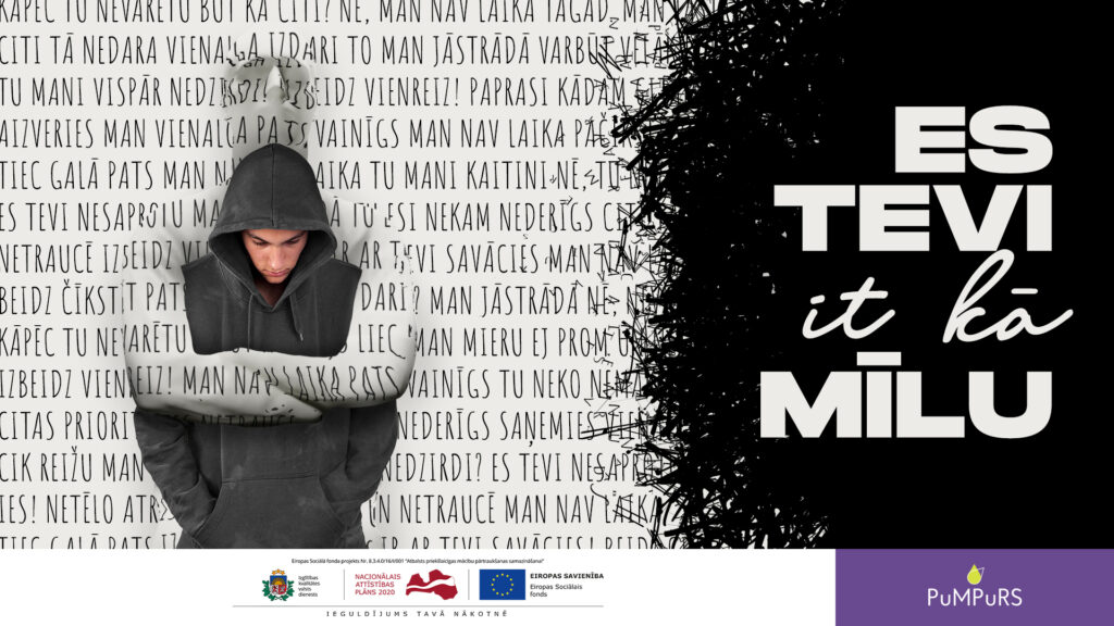 Kas notiek ar bērnu, kad viņš nav skolā? Vai viņš ir mājās? Vai viņš ir paēdis? Vai viņš ir drošībā? Kāpēc viņš neko nestāsta? Kāpēc viņš ir tik neizprotams? Ar jautājumu par to, kāpēc bērni nemeklē atbalstu pie saviem vecākiem, projekts PuMPuRS sācis informatīvo kampaņu “Es Tevi it kā mīlu”. It kā – tas ir mazais iestarpinājums, kas tik bieži prasmīgi tiek noslēpts sadzīves, aizņemtības un noguruma aizsegā. Tas ir manifests to jauniešu vārdā, kuriem IR nepieciešams atbalsts, kuriem ir risks priekšlaicīgi pārtraukt mācības un iespēja pazaudēt pilnvērtīgu nākotni un vietu sabiedrībā. Šis provokatīvais sauklis “Es tevi it kā mīlu” aicina domāt – vai es tiešām esmu sava bērna atbalsts, vai tiešām zinu, kā mans bērns jūtas, informē kampaņas rīkotāji.