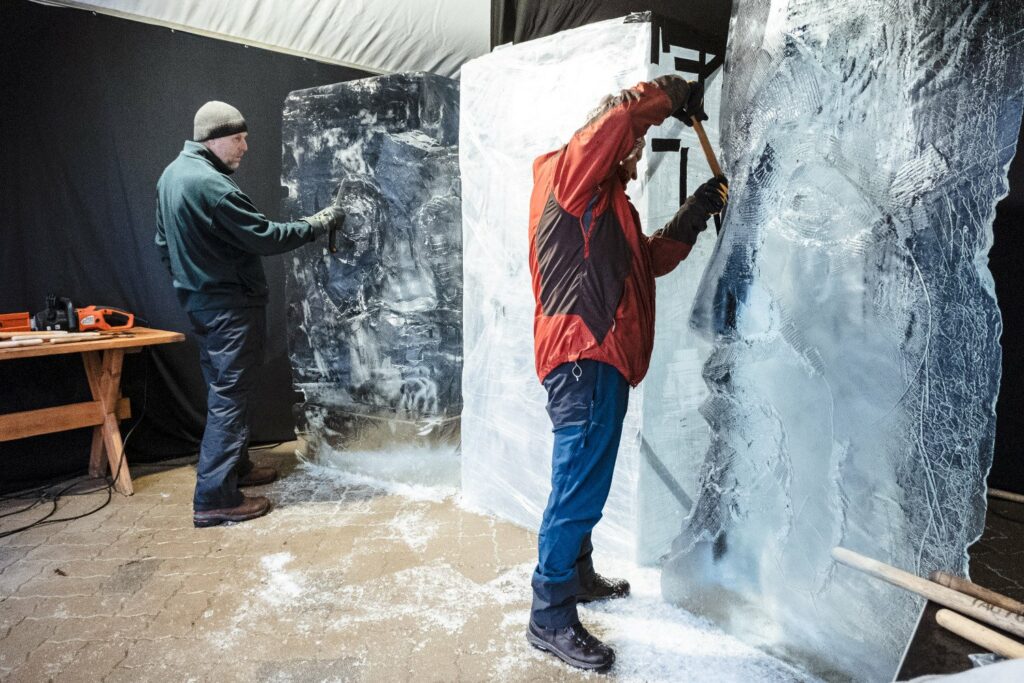 Komandu skulptūru veidošanai konkursa dalībnieki izmanto divus lielus ledus blokus – katru 210x110x50 centimetrus lielu jeb divas tonnas speciāli saldēta pārtikas ledus bez gaisa burbuļiem, kas kūst krietni lēnāk kā dabā sastopamais ledus. Katra komandas skulptūra tiek veidota individuālā teltī, lai to mazāk skartu laikapstākļi. Komandu skulptūru veidošanu tēlnieki turpinās līdz 1. februāra vakaram.