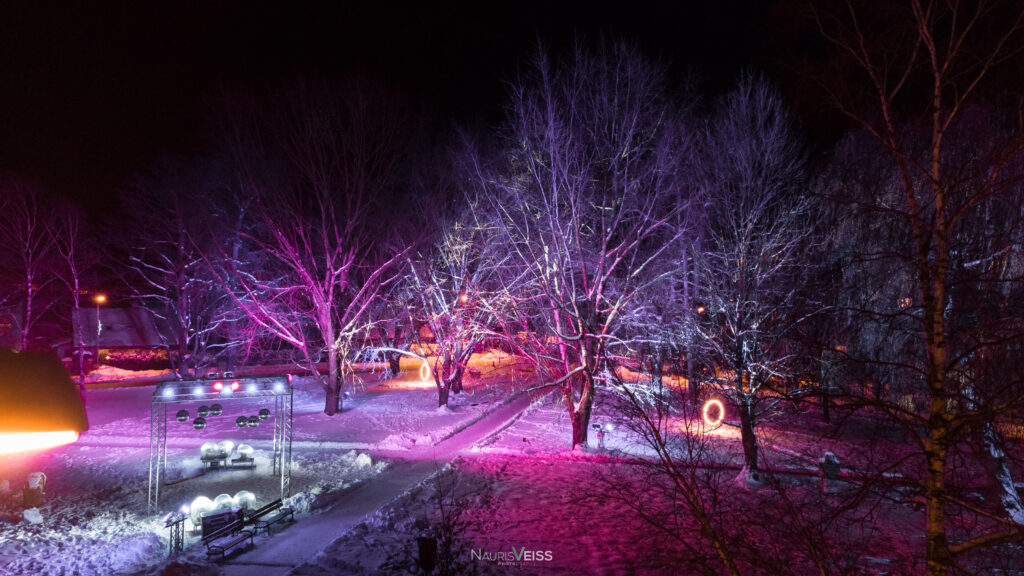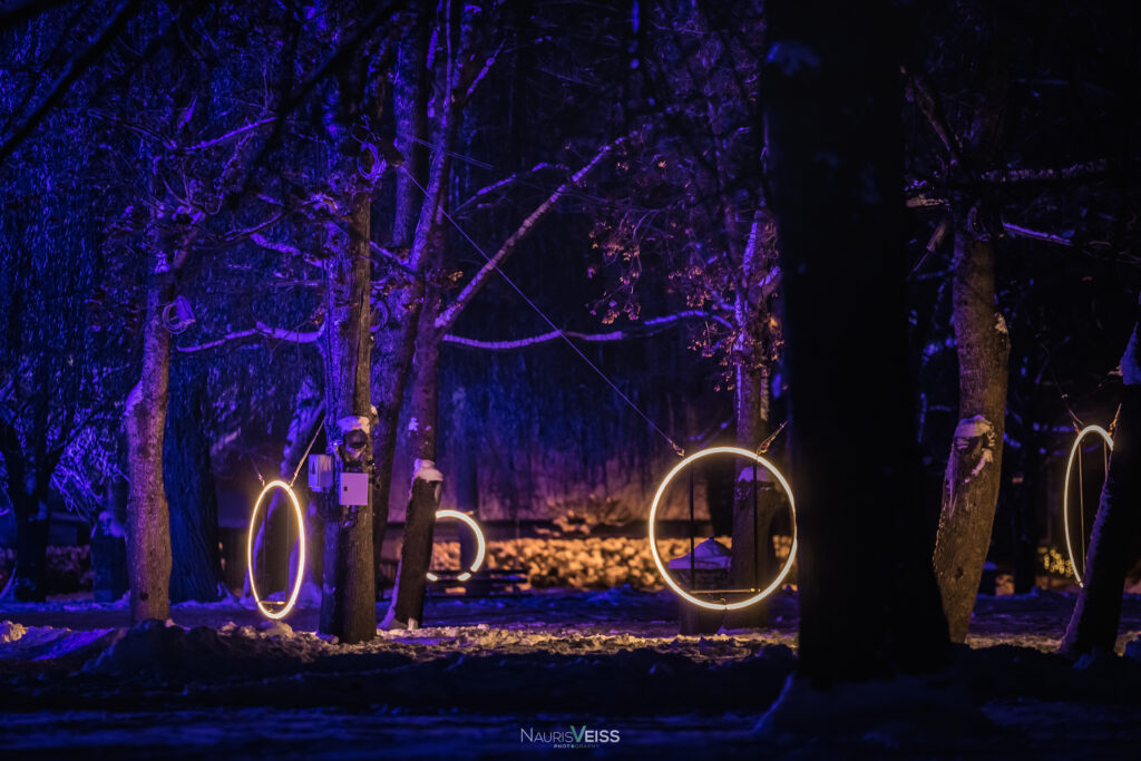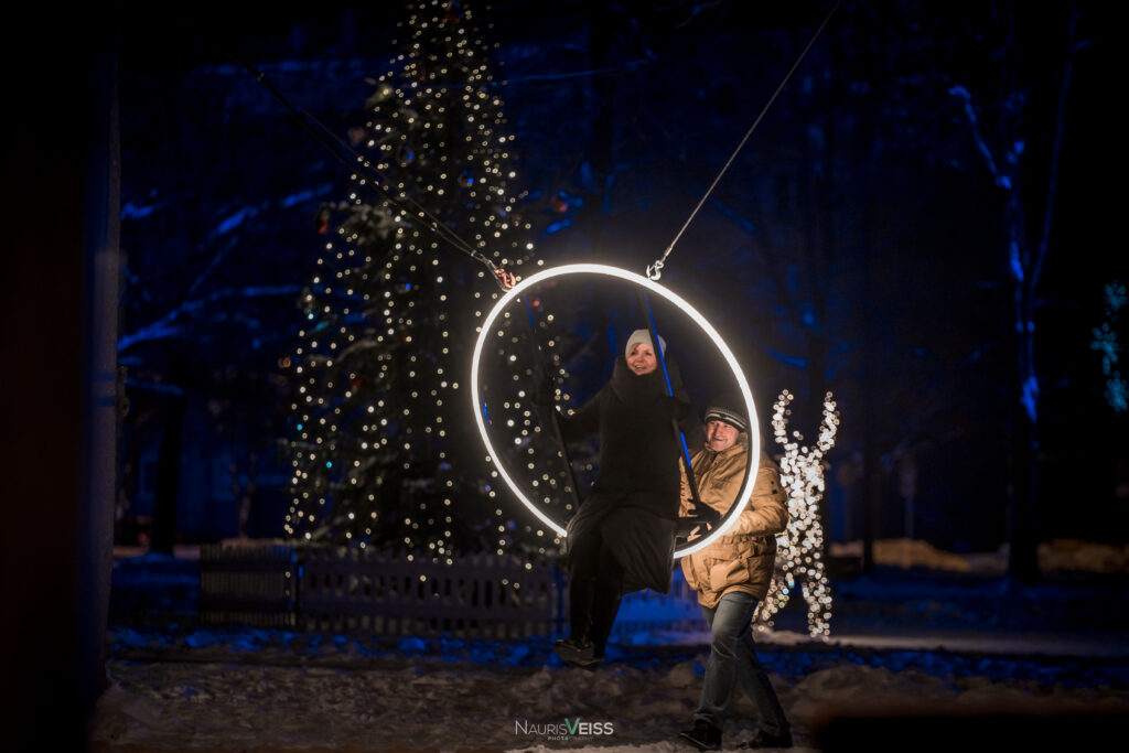 Tā kā Karpa dārzu ieskauj kuplas koku galotnes, mirdzošo gaismas staru un muzikālā noformējuma simfonija veltīta šiem kokiem, kas, dāvādami baušķeniekiem svētku līksmi, noturēs apaļās gaismas šūpoles. Iesēžoties šūpolēs un uz mirkli atraujot kājas no sniegotās zemes, ikvienam parka apmeklētājam būs iespēja kļūt par daļu no simfonijas. Pērn Bauska bija pirmā vieta Latvijā, kur kompānija SIA “Full Stage” uzstādīja šāda tipa šūpoļu konstrukciju. Priecājamies, ka arī šogad šūpoles tiks uzstādītas tieši Bauskā.