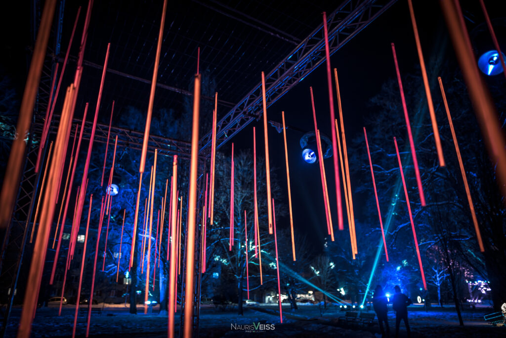 Simfonija – ciklisks skaņdarbs, kurā vērojams mērķtiecīgs dinamikas kāpinājums. Par galveno izteiksmes līdzekli izmantojot gaismu, šādu ainu divu nedēļu garumā baušķeniekiem un citiem interesentiem būs iespējams piedzīvot Karpa dārzā. Līdz svētkiem parkā valdīs mierīga noskaņa, skanēs instrumentālā mūzika, krāsu gamma tiks ieturēta zilos, zaļganos un gaišos toņos. Taču, nākot tuvāk īstajām svinību dienām, simfonija kļūs arvien lustīgāka un tiks paplašināta arī izmantoto gaismas krāsu palete.