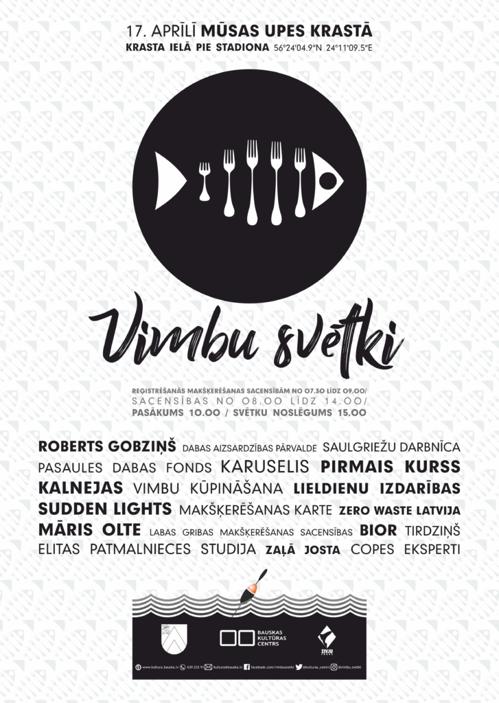 17. aprīlī ar dzīvo mūziku, kūpinātu vimbu garšu, Labas gribas makšķerēšanas sacensībām un izglītojošām aktivitātēm par dabas aizsardzības jautājumiem vienā no populārākajām vimbu makšķerēšanas pilsētām Bauskā, Mūsas upes labajā krastā atgriezīsies pasākums visai ģimenei – “Vimbu svētki”. Svētki jau trešo reizi top ar Zivju fonda atbalstu, informē Bauskas Kultūras centra sabiedrisko attiecību speciāliste Kristiāna Paula Lībiete.