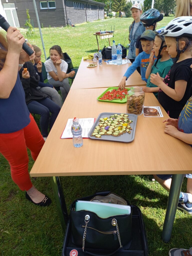 Pēc finiša bija iespēja nodegustēt kukaiņu proteīna produkciju.