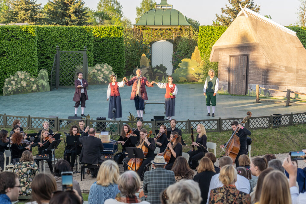 Dārza svētku vakara pasākumā paredzēts Kurzemes hercoga Pētera kapelmeistara Johana Ādama Hillera operetes uzvedums jeb dziesmuspēle “Mīla uz laukiem” senās mūzikas interpreta Māra Kupča iestudējumā ar baroka orķestra “Collegium Musicum Riga” dalību.