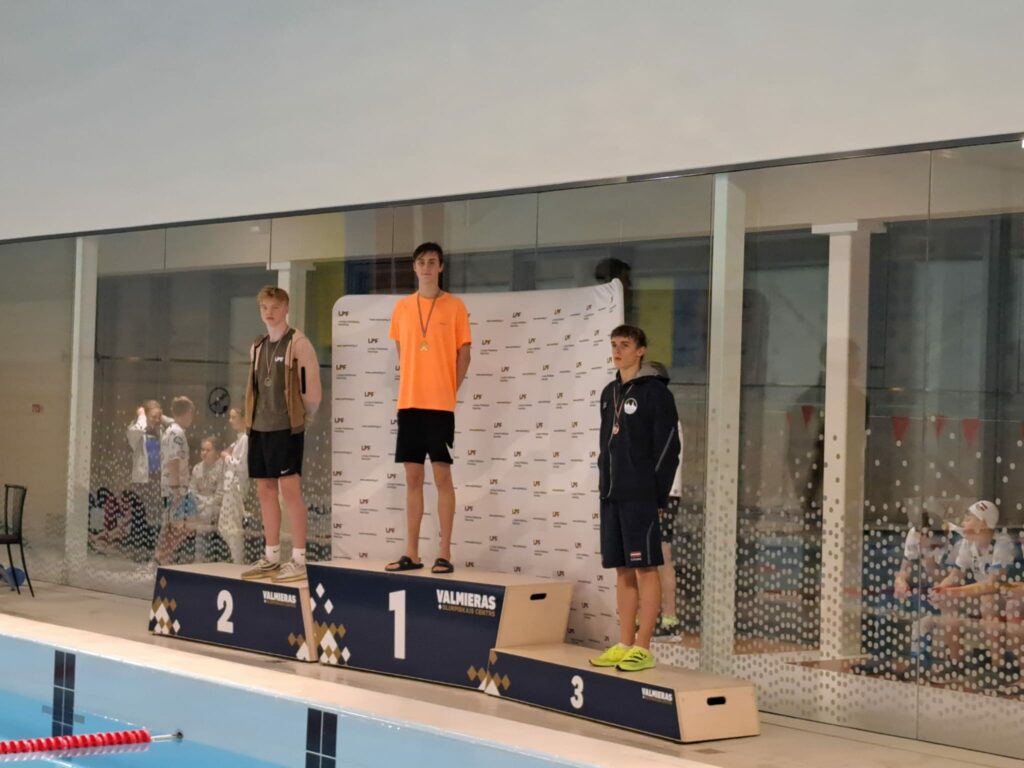 Nikolass Deičmans (2), Matīss Kaktiņš (2), Kristīne Zinoviča (2), Rūta Šķirus, 4×50 m kombinētās stafetes komanda (Roberts Lejnieks, Elijs Aleksejevs, M.Kaktiņš, N.Deičmans), 4×50 m brīvā stila stafetes komanda (Sofija Vanaga-Stūre, Nikola Elpe, Anastasija Fortele, R.Šķirus), 4×50 m kombinētās stafetes komanda (K.Zinoviča, R.Šķirus, N.Elpe, A.Fortele)