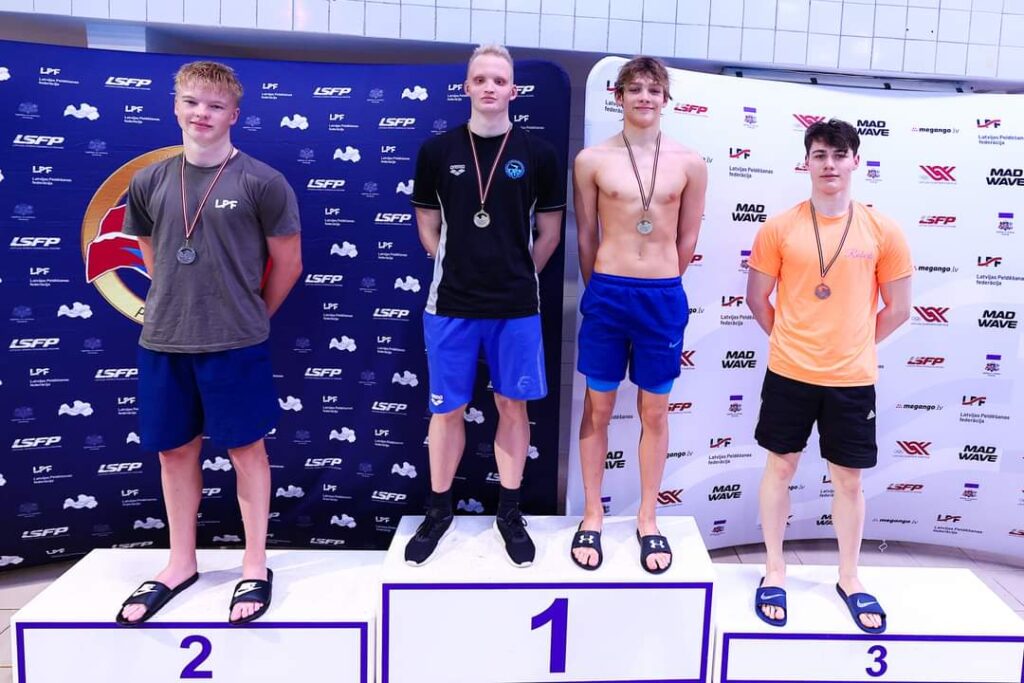 Junioru komanda 4×100 m brīvajā stilā (Roberts Gūtmanis, Artis Jurgens, Kristians Brenčs, Nikolass Deičmans)