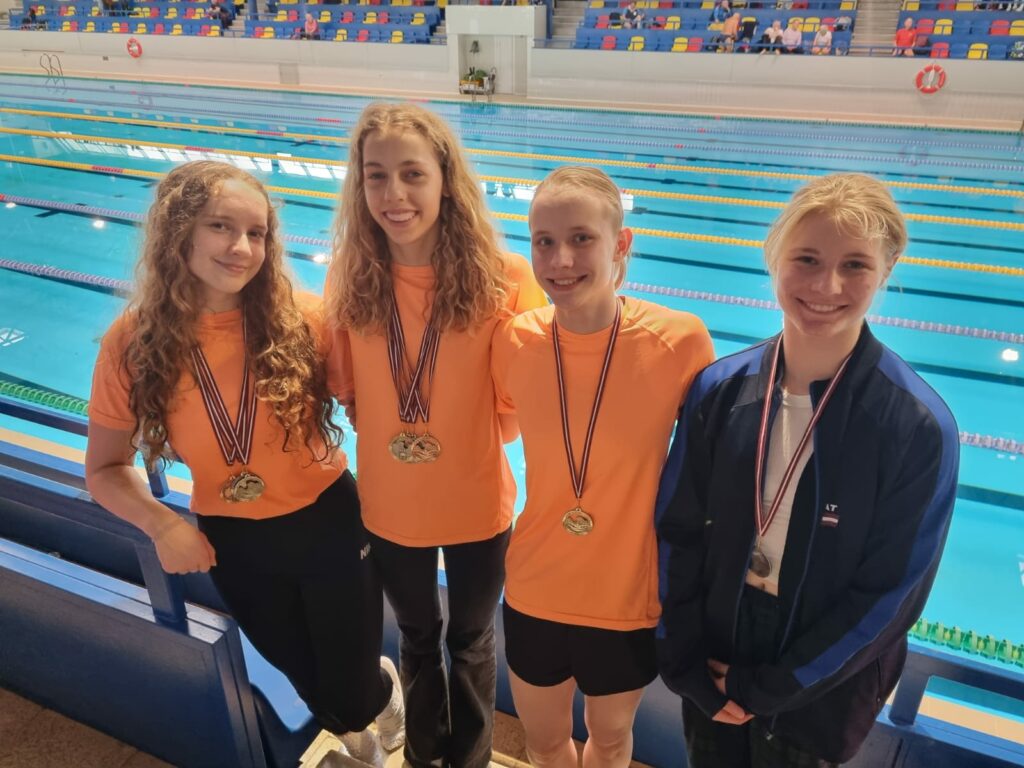 Junioru stafetes komanda 4×100 m brīvajā stilā (N.Elpe, S.Vanaga-Stūre, Tīna Kalnišķe, A.Fortele)