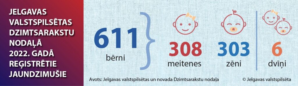 Jelgavas valstspilsētas un novada Dzimtsarakstu nodaļa apkopojusi statistiku par aizvadīto gadu. 2022. gadā nodaļā reģistrēti 611 jaundzimušie, tajā skaitā seši dvīņu pāri, un visbiežāk dotais vārds meitenēm ir Emīlija, bet zēniem – Ralfs, informē Jelgavas pašvaldības Sabiedrisko attiecību departamentā.