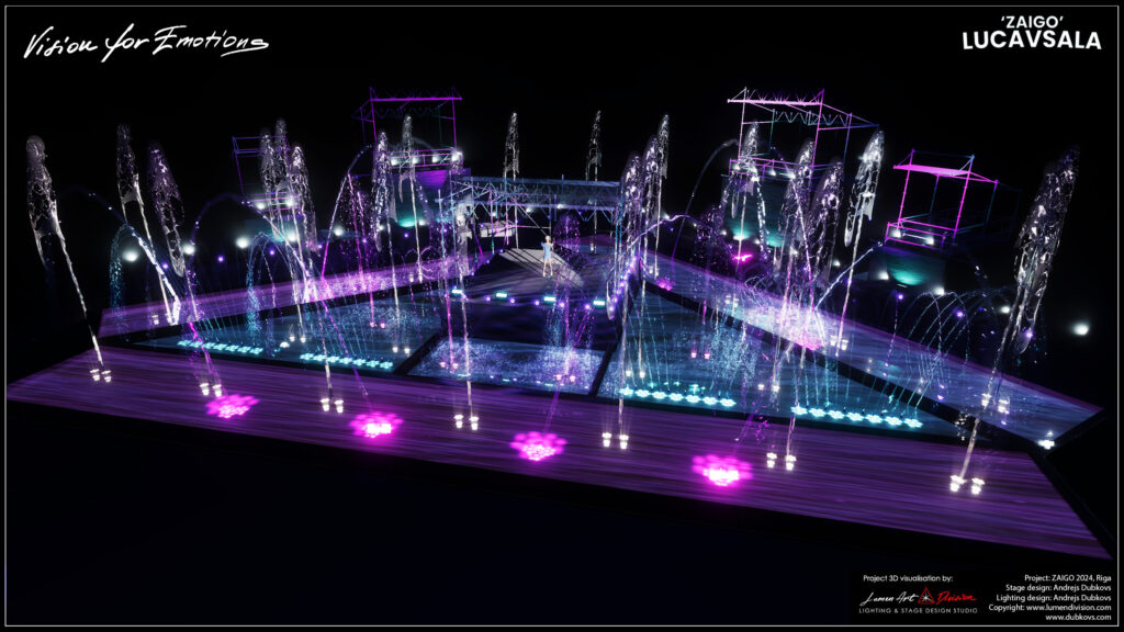 “Zaigo” ir šī gada vērienīgākais ceļojošais strūklaku šovs Baltijā ar vairāk nekā 100 multimediāliem skatuves specefektiem, tostarp dejojošām strūklakām, ūdens geizeriem, kas pacelsies 30 metru augstumā (100 tonnu ūdens), uguns šāvējiem, lāzeru un gaismu projekciju šovu, kā arī instrumentālu pavadījumu (čells, bungas) un virkni zināmu skaņdarbu dziedātājas Dināras Rudānes izpildījumā.