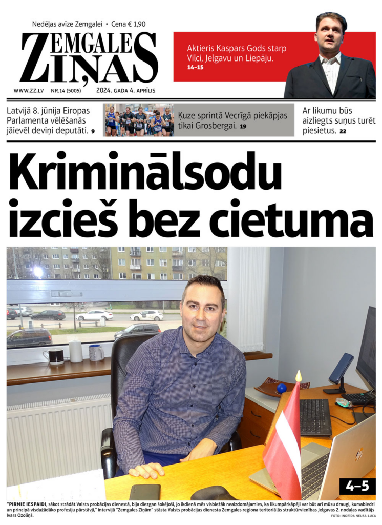 Jaunākajā laikraksta “Zemgales Ziņas” numurā (04.04.2024) lasiet: *Probācijas dienestā katru dienu kāds iet prom vai nāk klāt. *Aktieris Kaspars Gods starp Vilci, Jelgavu un Liepāju. *Pēc piena naudas ar burku un citi stāsti. *Skolēnu militāri patriotiskā audzināšana Jelgavas novadā. *Nieres transplantācija jaunietei atdeva dzīvi.
