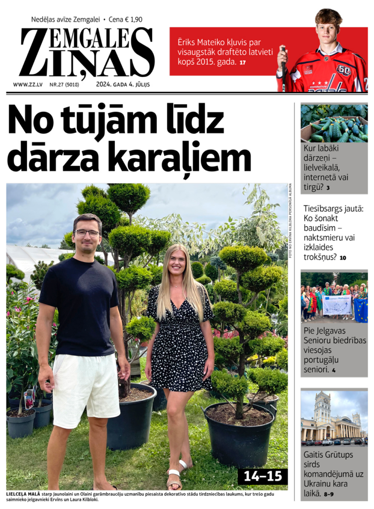 Jaunākajā laikraksta “Zemgales Ziņas” numurā (04.07.2024) lasiet: *Dobelnieks Uldis turpina krāt sodāmības. *Gaitis Grūtups sirds komandējumā uz Ukrainu kara laikā. *Kur labāki dārzeņi – lielveikalā, internetā vai tirgū? *No tūjām līdz dārza karaļiem.