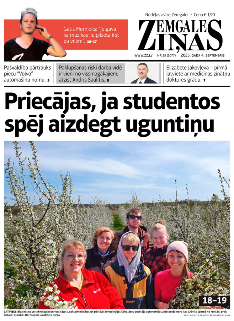 Jaunākajā laikraksta “Zemgales Ziņas” numurā (04.09.2025) lasiet: *Pirmā latviete ar medicīnas zinātņu doktores grādu. *Par drošības noteikumiem, to ievērošanu darba vidē stāsta Zemgales reģionālās Valsts darba inspekcijas vadītājs, galvenais valsts inspektors Andris Saulītis. *Popmūzikas panks no Jelgavas – Gatis Mūrnieks. *Agronomijas zinātņu doktore Ilze Grāvīte Priecājas, ja studentos spēj aizdegt uguntiņu.