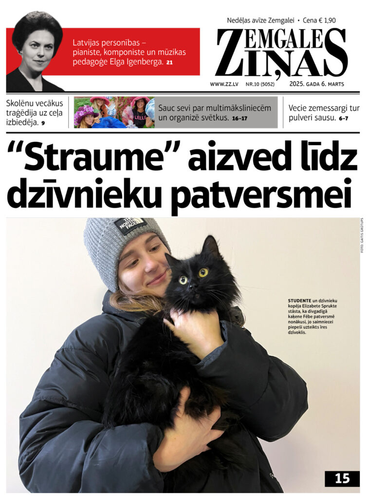 Jaunākajā laikraksta “Zemgales Ziņas” numurā (06.03.2025) lasiet: *Vecie zemessargi tur pulveri sausu. *“Straume” aizved līdz dzīvnieku patversmei. *Skolēnu vecākus traģēdija uz ceļa izbiedēja. *Latvijas personības – pianiste, komponiste un mūzikas pedagoģe Elga Igenberga. *Drošība svarīga gan valsts iekšienē, gan ārpus tās: žurnālisti pie sarunu galda ar aizsardzības, ārlietu un iekšlietu ministru.