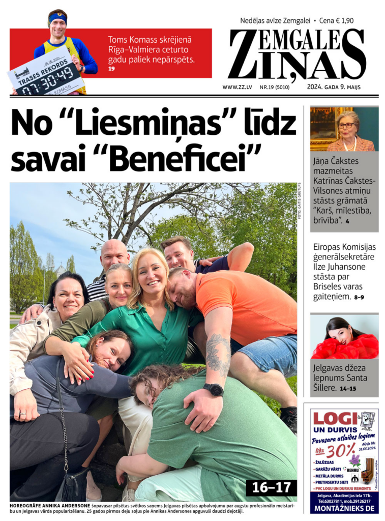 Jaunākajā laikraksta “Zemgales Ziņas” numurā (09.05.2024) lasiet: *Jāņa Čakstes mazmeitas Katrīnas Čakstes-Vilsones atmiņu stāsts grāmatā “Karš, mīlestība, brīvība”. *No “Liesmiņas” līdz savai “Beneficei”. *Jelgavas džeza lepnums Santa Šillere. *Krāsu rotaļas Modes muzejā; Vērtīgākais eksponāts – Merilinas Monro kokteiļkleita. *Eiropas Komisijas ģenerālsekretāre Ilze Juhansone stāsta par Briseles varas gaiteņiem.