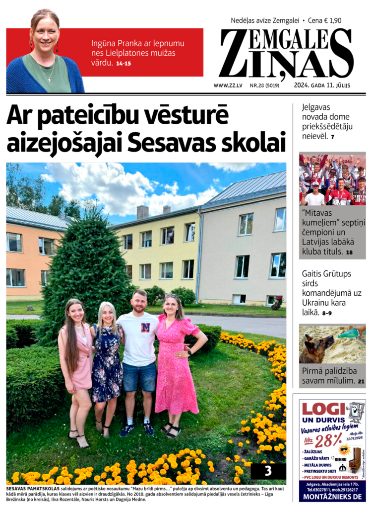 Jaunākajā laikraksta “Zemgales Ziņas” numurā (11.07.2024) lasiet: *Ar pateicību vēsturē aizejošajai Sesavas skolai. *Spriedumu sagaida pēc deviņiem gadiem. *Jelgavas novada dome jaunu priekšsēdētāju tomēr neievēl. *Gaitis Grūtups sirds komandējumā uz Ukrainu kara laikā. *Lielplatones muižas parka leģendas.