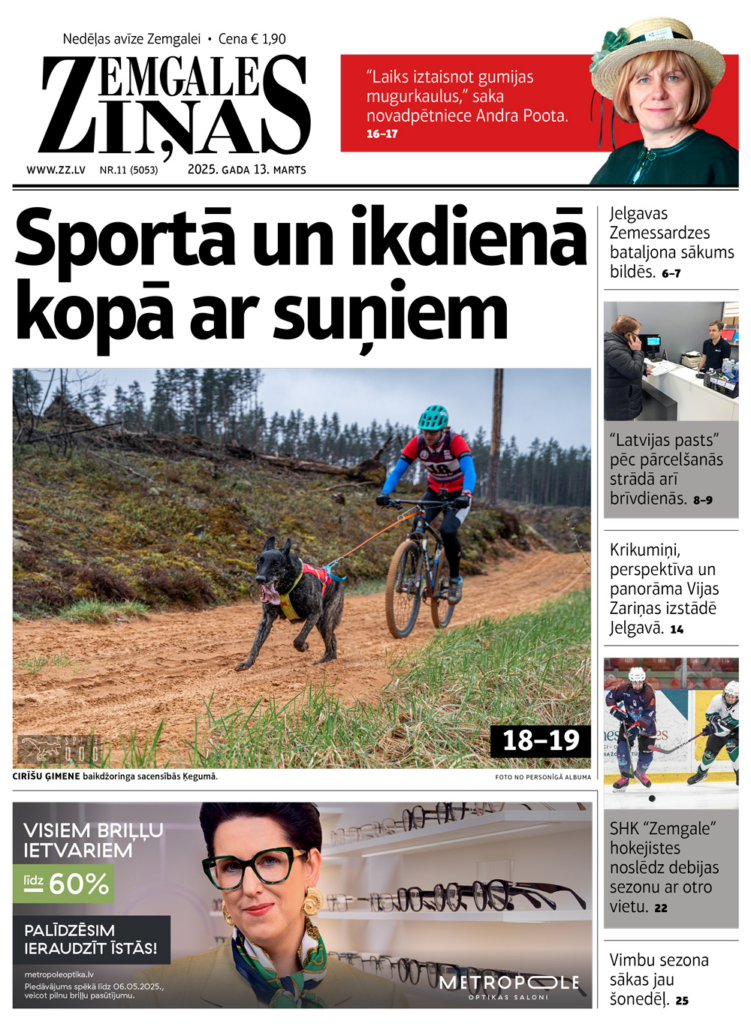 Jaunākajā laikraksta “Zemgales Ziņas” numurā (13.03.2025) lasiet: *Jelgavas Zemessardzes bataljona sākums bildēs. *Pasts reģionos pagaidām paliek. *Krikumiņi, perspektīva un panorāma Vijas Zariņas izstādē Jelgavā. *Saruna ar novadpētniecības speciālisti Jelgavas pilsētas bibliotēkā Andru Pootu. *Sportā un ikdienā kopā ar suņiem.