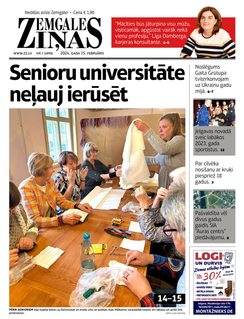 Jaunākais laikraksta “Zemgales Ziņas” numurs: 15.02.2024