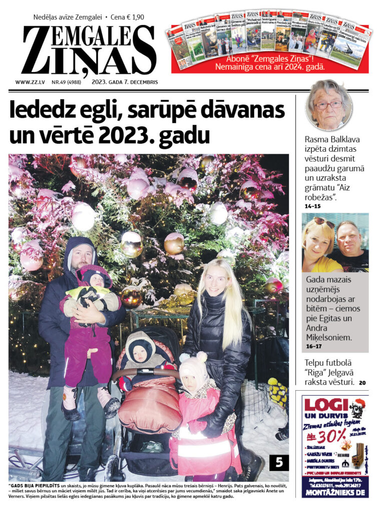 Jaunākais laikraksta “Zemgales Ziņas” numurs: 7.12.2023