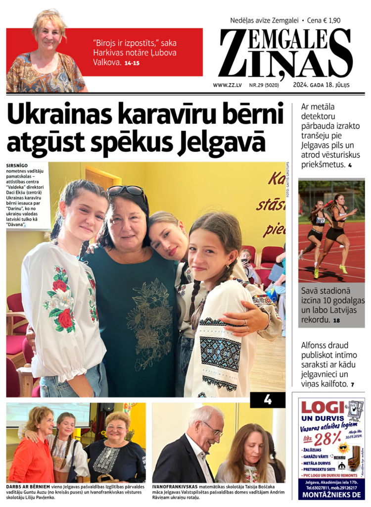 Jaunākajā laikraksta “Zemgales Ziņas” numurā (18.07.2024) lasiet: *Gaitis Grūtups sirds komandējumā uz Ukrainu kara laikā. *Ukru vecais klubs pārtapis par atpūtas kompleksu. *Reketieris draud publiskot intīmus materiālus. *Lai riepas var kalpot kā resurss, tās atbilstoši jānodod. *Ukraiņu skolēni atgūst spēkus nometnē Jelgavā.