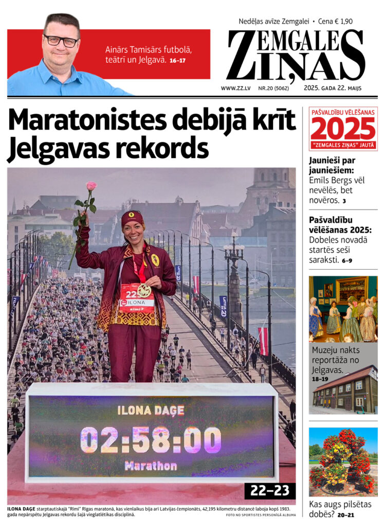 Jaunākajā laikraksta “Zemgales Ziņas” numurā (22.05.2025) lasiet: *Dobeles novadā pašvaldību vēlēšanās startēs seši deputātu kandidātu saraksti. *Maratonistes debijā krīt Jelgavas rekords. *Ainārs Tamisārs futbolā, teātrī un Jelgavā.