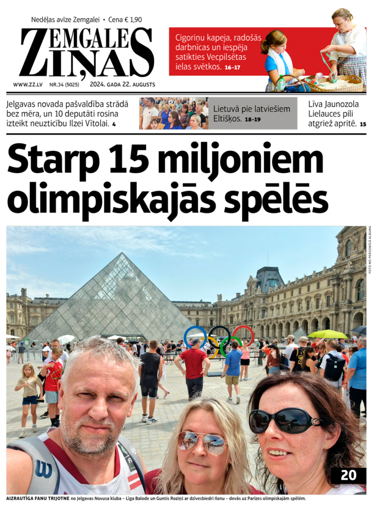 Jaunākajā laikraksta “Zemgales Ziņas” numurā (22.08.2024) lasiet: *Jelgavas novada pašvaldība strādā bez mēra, un 10 deputāti rosina izteikt neuzticību Ilzei Vītolai. *Dārzs applūst nekopta novadgrāvja dēļ. *Lietuvā pie latviešiem Eltišķos. *Līva Jaunozola Lielauces pili atgriež apritē.