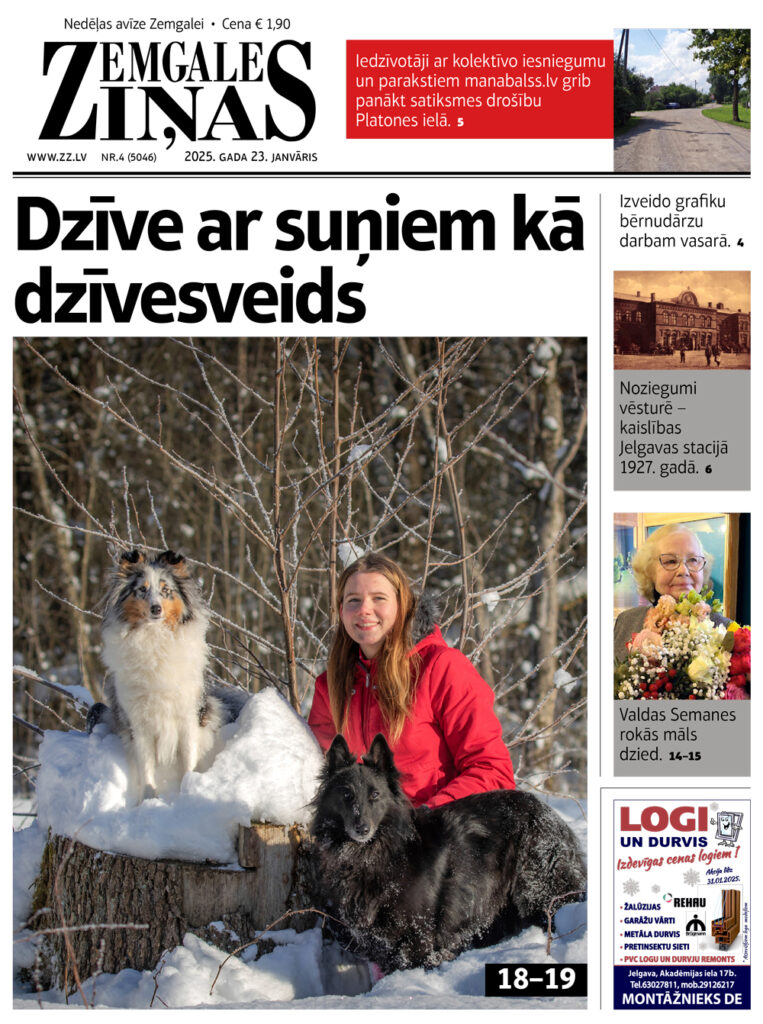 Jaunākajā laikraksta “Zemgales Ziņas” numurā (23.01.2025) lasiet: *Ar aplausiem draudze pavada līdzšinējo Jelgavas diecēzes bīskapu Edvardu Pavlovski. *Ar kolektīvo iesniegumu Platones ielā grib panākt satiksmes drošību. *Ziema, kad Jelgavas pusē ne tikai dedzināja, bet arī slepkavoja. *Ukraina dzīvo un cīnās tālāk: žurnālistiskā ceļojuma pēcraksts. *Dzīve ar suņiem kā dzīvesveids.