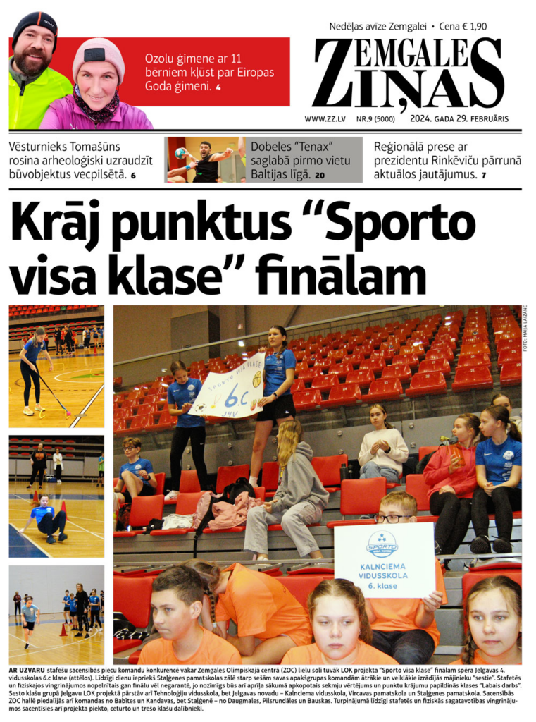 Jaunākajā laikraksta “Zemgales Ziņas” numurā (29.02.2024) lasiet:*Ozolu ģimene ar 11 bērniem kļūst par Eiropas Goda ģimeni.*Vēsturnieks Tomašūns rosina arheoloģiski uzraudzīt būvobjektus vecpilsētā.*Reģionālā prese ar prezidentu Rinkēviču pārrunā aktuālos jautājumus.*Ciemos Jelgavas sāls istabiņā.*Rada lietotni “112 Latvija” cilvēku brīdināšanai apdraudējuma apstākļos.