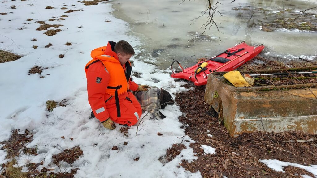 Jau otro dienu pēc kārtas ugunsdzēsēji glābēji steidzās palīgā ledū ielūzušam dzīvniekam. Vakar izsaukums saņemts no Jelgavas novada Kalnciema, kur Lielupē apmēram 200 metrus no krasta ledū bija ielūzis suns. Ugunsdzēsēji glābēji ar glābšanas dēļa palīdzību nokļuva līdz dzīvniekam un nogādāja viņu krastā.