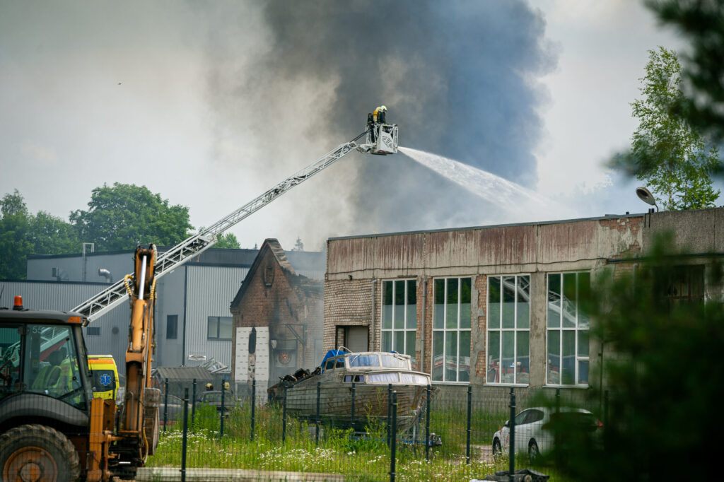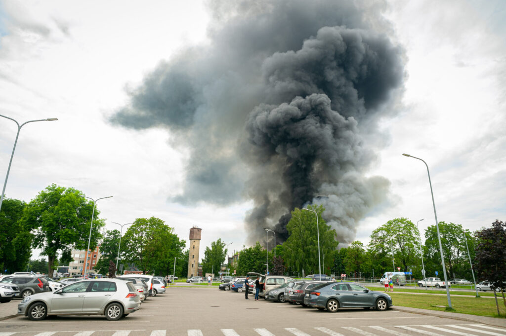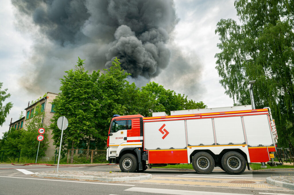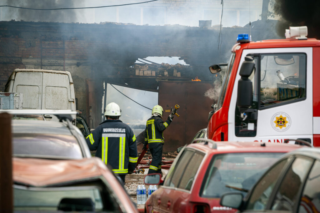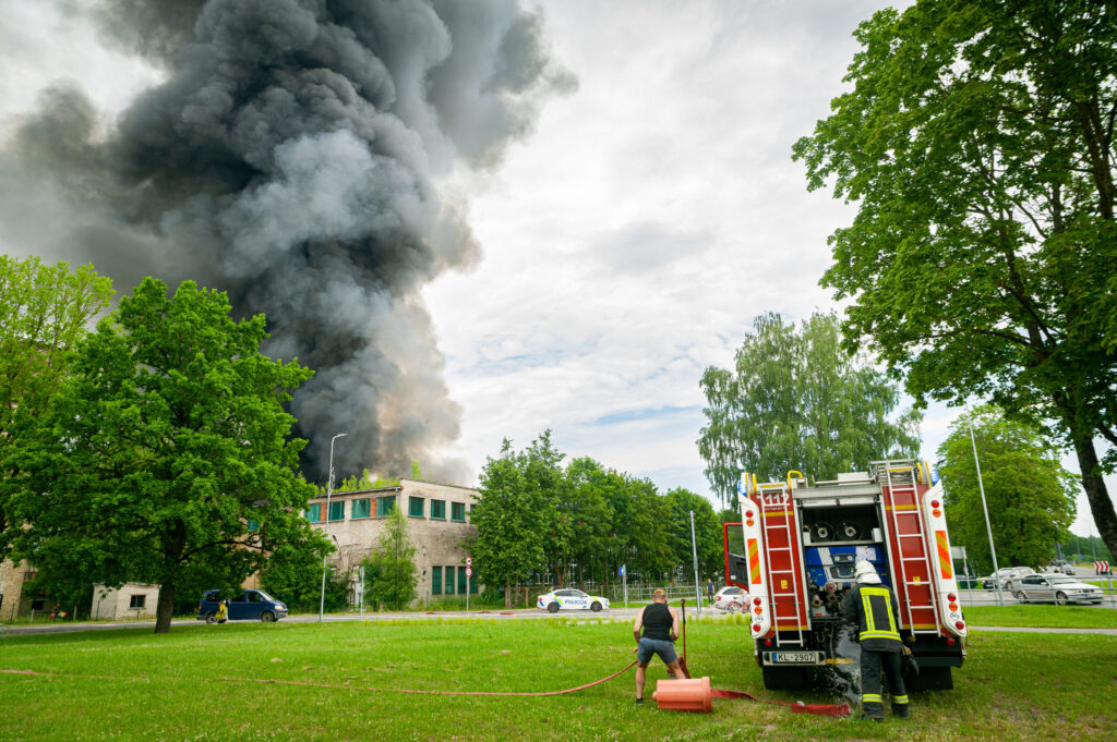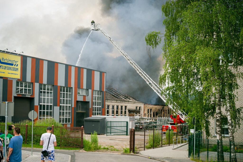 Liesmas strauji izplatās uz blakus ēkām un uz notikuma vietu dodas vairāk nekā 30 ugunsdzēsēji, divas autokāpnes un astoņas autocisternas.