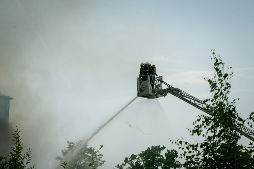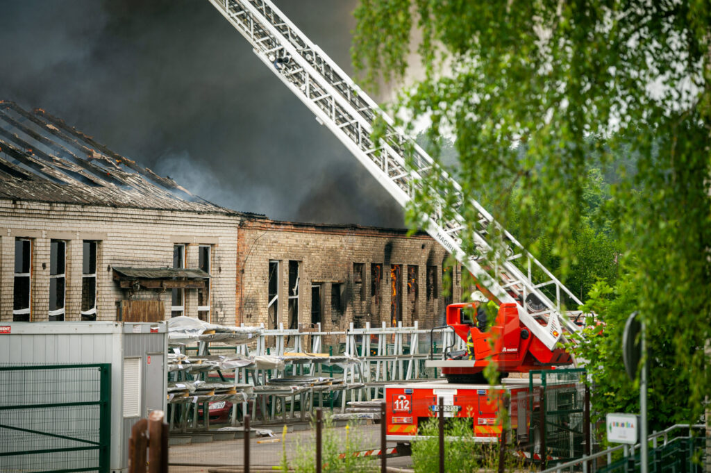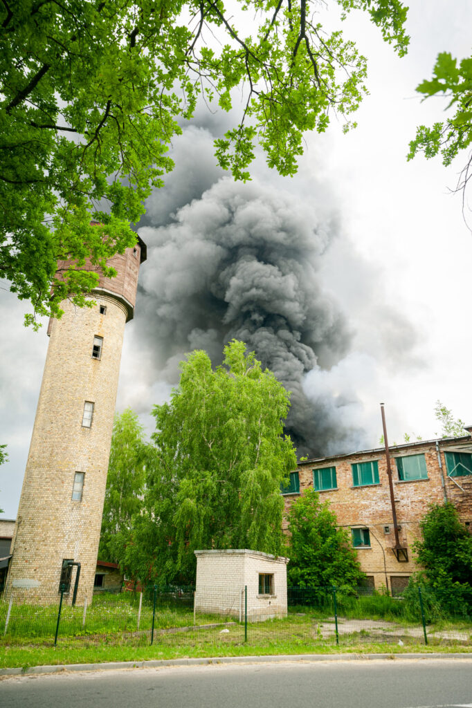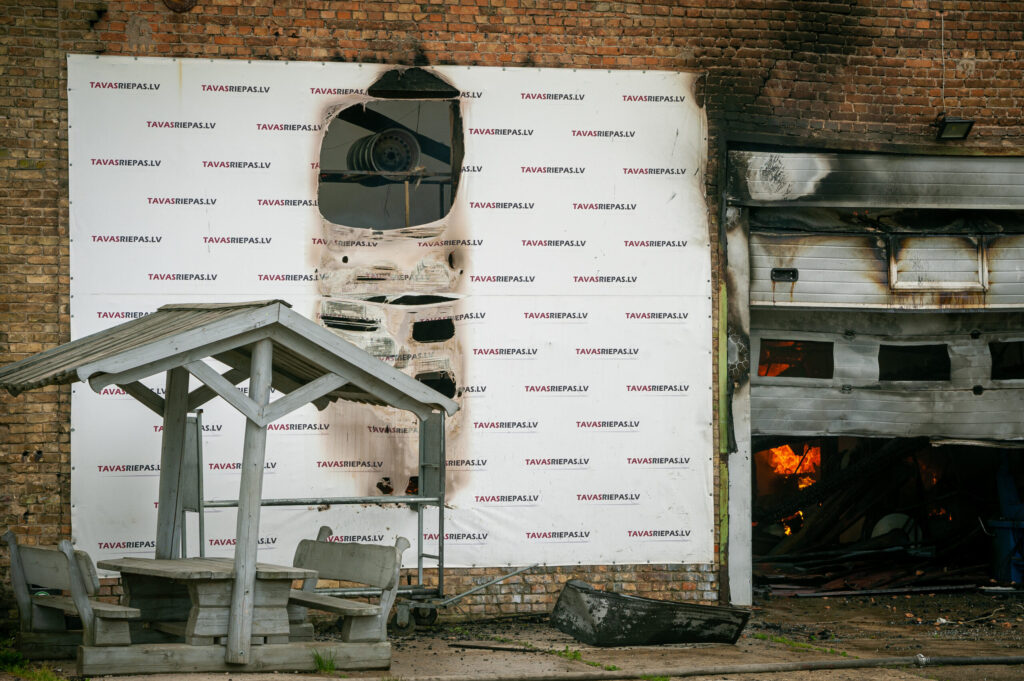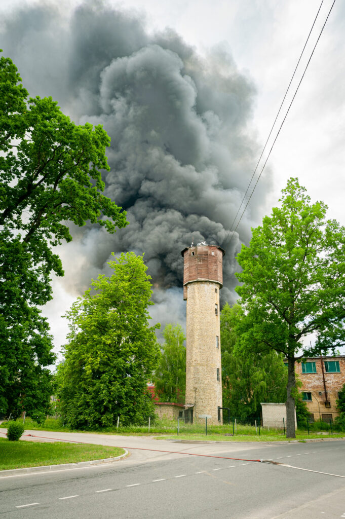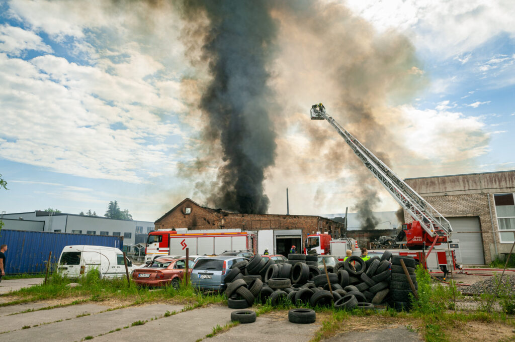 Liesmas strauji izplatās uz blakus ēkām un uz notikuma vietu dodas vairāk nekā 30 ugunsdzēsēji, divas autokāpnes un astoņas autocisternas.