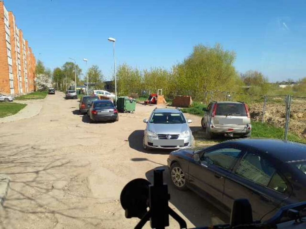 Piemērs, kā nevajag darīt – laukums, kuru lieto daudzdzīvokļu mājas Jelgavā, Meiju ceļā 14;16;18;20;30 un Zvejnieku ielā 5;7. Fotogrāfijas uzņemtas dažādās dienās.