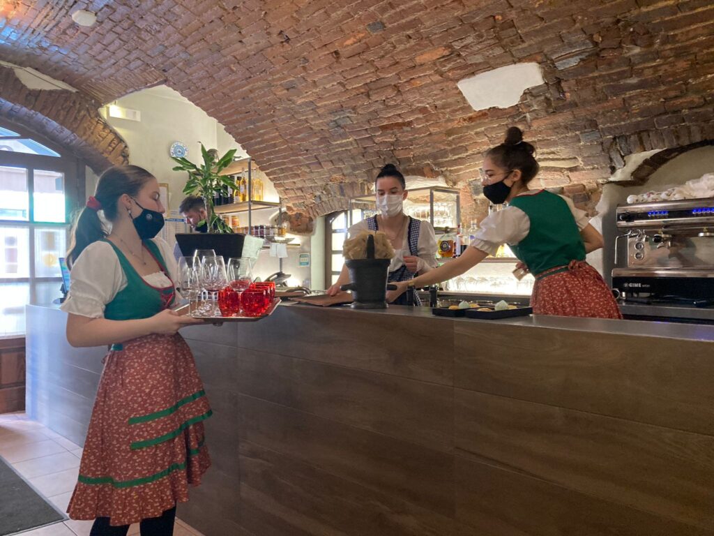 Itālijā Jelgavas Amatu vidusskolas topošie pavāri divas nedēļas strādāja kāda atzītā restorānā Bergamo. Divām mūsu meitenēm bija uzticēta viesu uzņemšana, bet divi puiši strādāja virtuvē. “Restorāna vadītājs, ieraugot mūsu meitenes, jau pirmajā stundā pateica, ka viņas strādās pie viesu apkalpošanas. Sagādāja viņām itāļu tradicionālos tērpus – kleitas ar puķēm un pat speciālas kurpes, bet puišiem tika uzticēts piedalīties gatavošanā. Viegli nebija – kā jau restorānā, darba stundas ir garas, bet, jāatzīst, ar lepnumu vēroju mūsu jauniešus. Saņēmām daudz komplimentus no saimnieka, kurš mūsu jauniešus patstāvīgā darbā gatavs ņemt kaut šodien, jo viņiem esot ļoti labas darba iemaņas, izpratne par restorāna darbu, viņi ātri apgūstot visu jauno,” tā L.Ziemele.