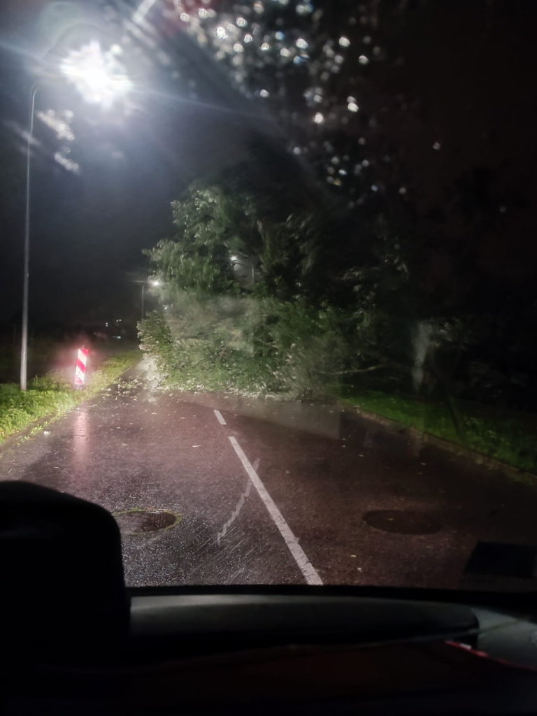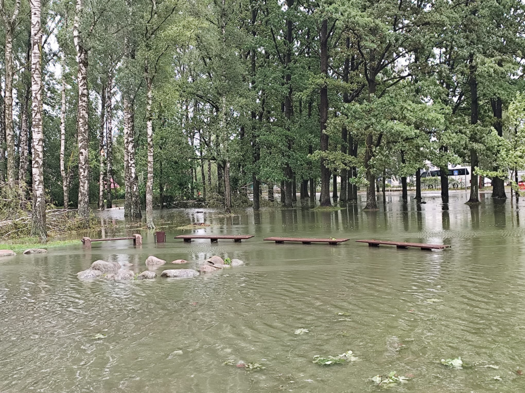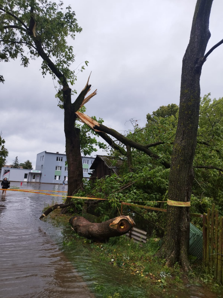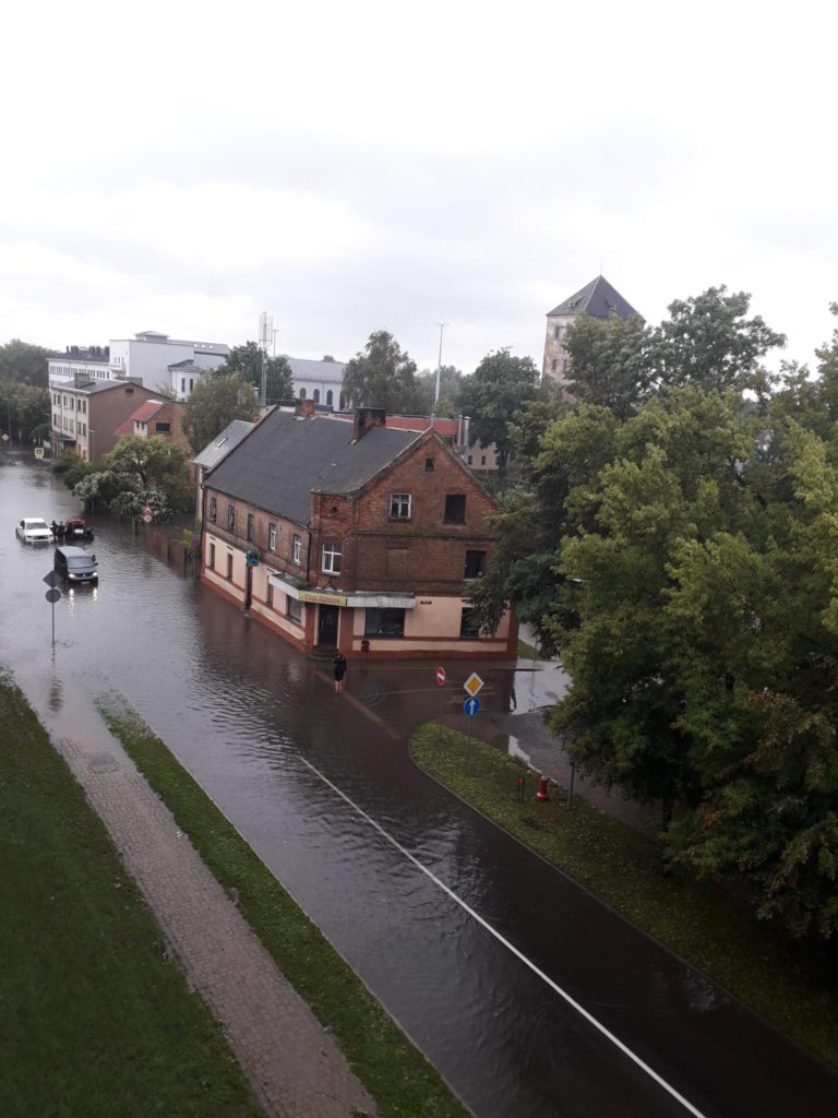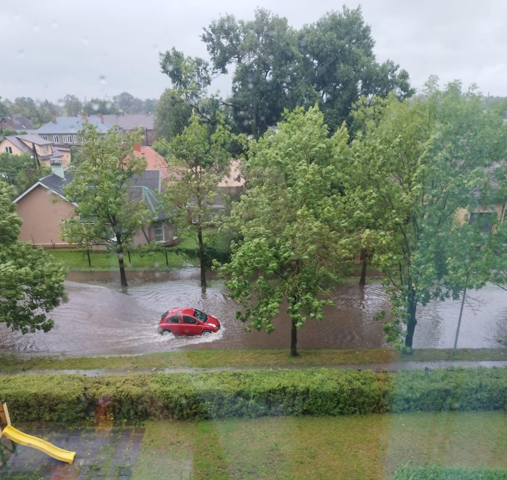 Pirmdienas, 29.jūlija, rītā vairākas ielas Jelgavā pēc stiprā lietus ir applūdušas, novēroja portāls. Arī kokiem apstādījumos un balkus ceļiem stiprais vējš ir nolauzis lielus zarus.