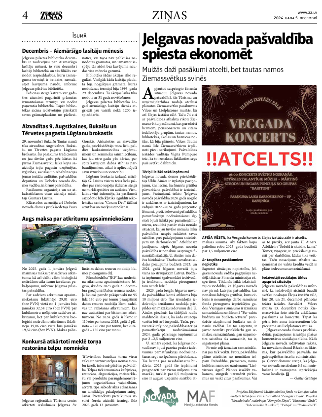 Projektu līdzfinansē Mediju atbalsta fonds no Latvijas valsts budžeta līdzekļiem. Par saturu atbild “Zemgales Ziņas”. Projektā “Novadu balss” sadarbojas “Zemgales Ziņas”, “Kurzemes Vārds”, “Izdevniecība “Auseklis””, “Vietējā” un “Radio SWH”.