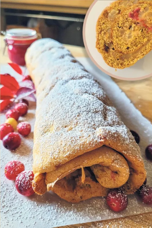 Satin ruletē. Pēc brītiņa, ja vēlas, apkaisa ar pūdercukuru un sagriež šķēlītēs.