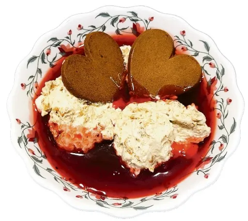Saldo krējumu, kam pievienots cukurs pēc garšas, saputoju. Sasmalcināju piparkūkas un iemaisīju saputotajā krējumā. Šoreiz pievienoju arī pusi tējkarotes kanēļa un pāris ēdamkarotes ruma. Ļāvu krēmam mazliet ievilkties. To varam baudīt ar kādu skābāku mērci – dzērveņu vai upeņu.