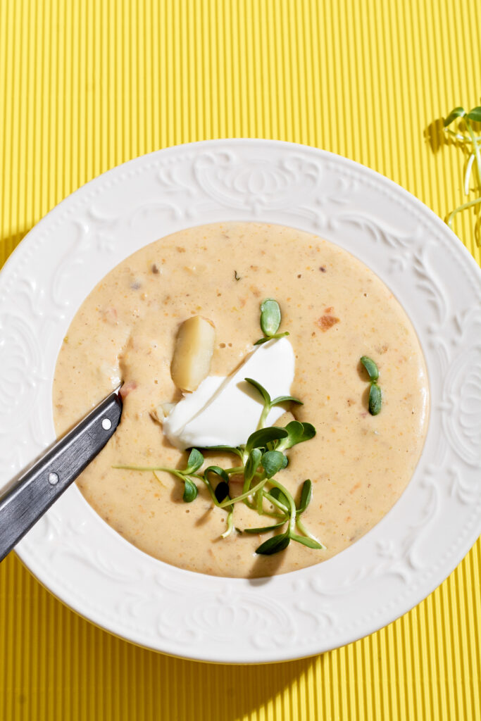 - Pusi no zupas sablenderē (tā dos zupai papildus krēmīgumu).